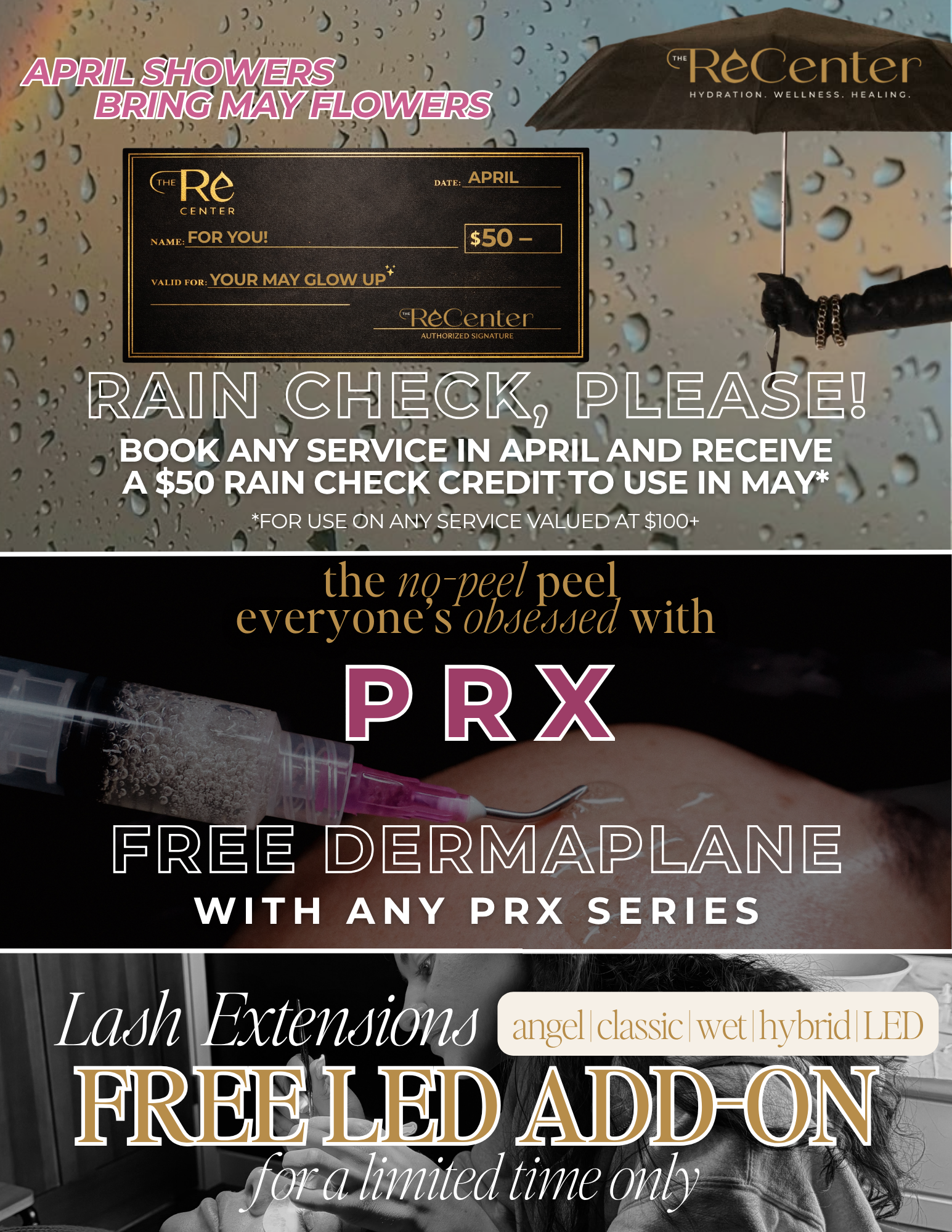 $300/month for ONE of the folowing: 2 Facials, 1 Facial & 1 Massage, or 1 Microneedling Face & Neck.